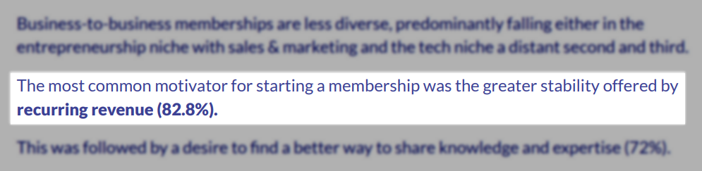 The 2024 Online Membership Industry Report found that 82.8% of membership creators said the stability of recurring revenue was their top motivator for starting a membership.