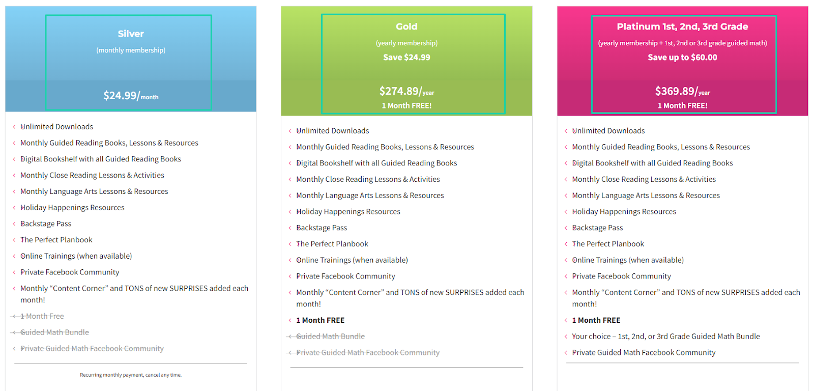 This is a pretty simple model. Members have access to everything in the membership once they pay a single monthly or yearly fee.