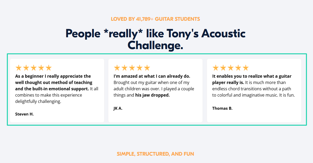 Since the demand was high, they launched Tony’s Acoustic Challenge, a membership site dedicated to guitar enthusiasts.