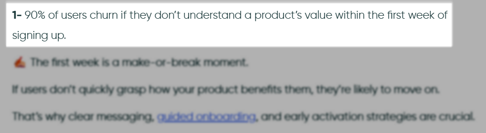 Research from UserGuiding shows that 90% of people leave when they don’t understand the product’s value within the first week of signing up.