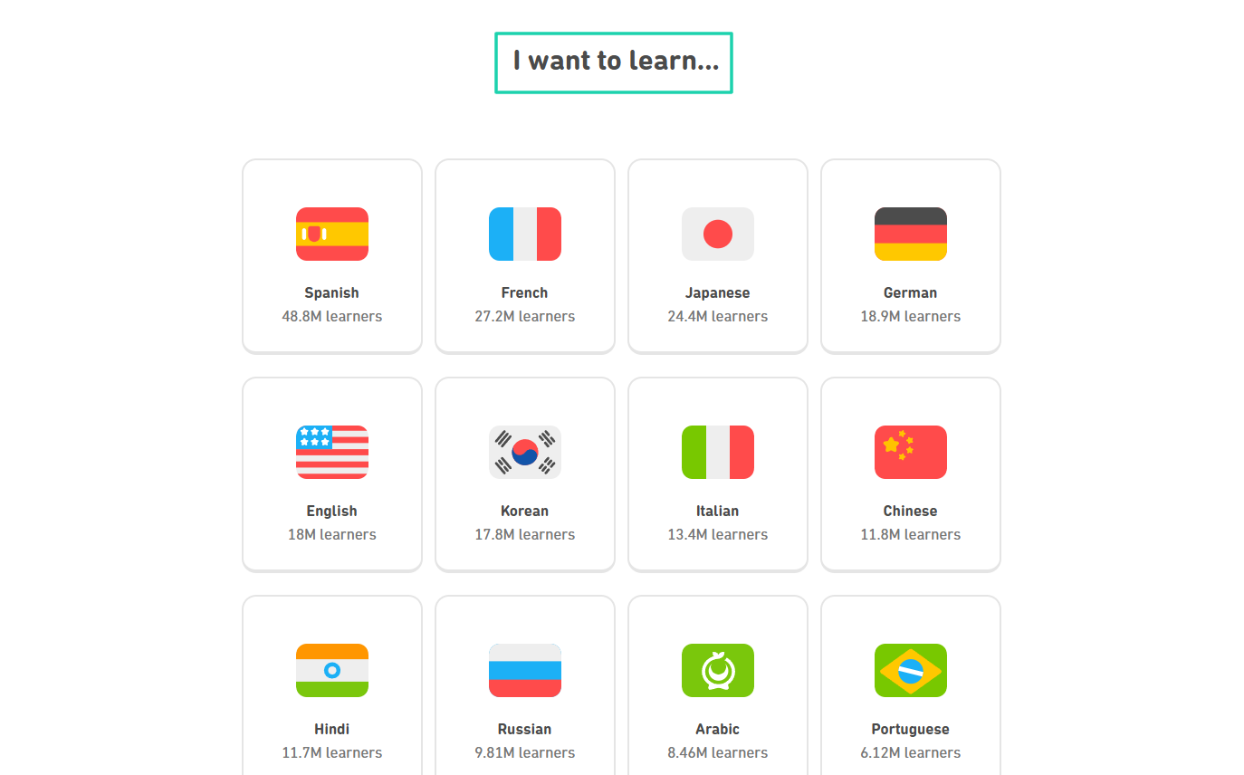 When you start, they guide you into choosing the language you want to learn.