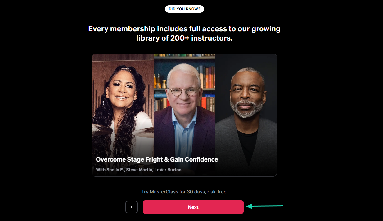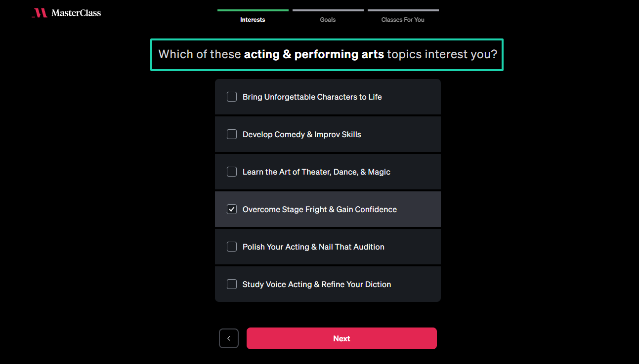 It’s the same thing with MasterClass. When you try to sign up, they will first help you select your interests.