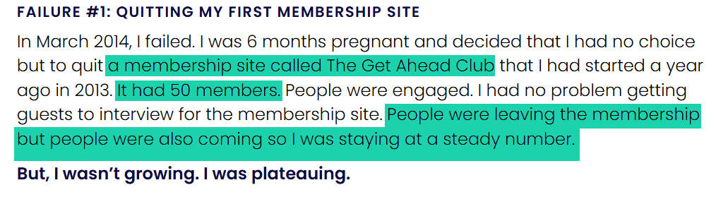 Anna Runyan experienced the same thing when she created her first membership site called the Get Ahead Club. She had 50 members.
