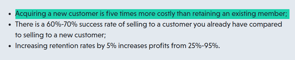 You're likely to spend five times more when trying to get a new member. So, obviously, retention is better than acquisition.