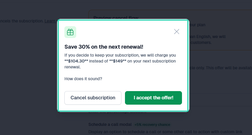 It could be a last chance discount, an option to schedule a call, a recovery survey, or you showing them what they might miss.