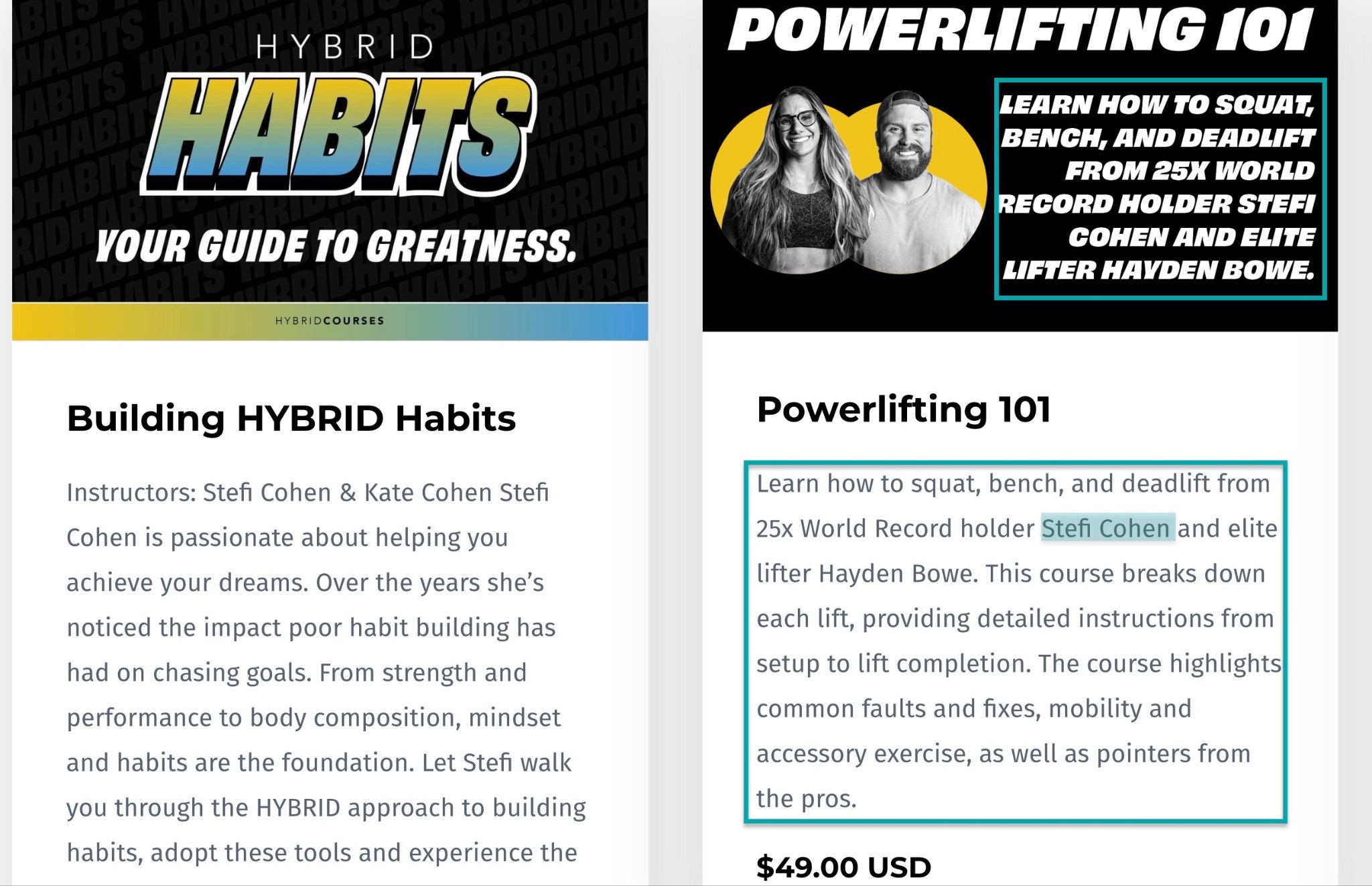 She co-founded Hybrid Performance Method. Through this platform, she sells strength training programs, courses, and coaching