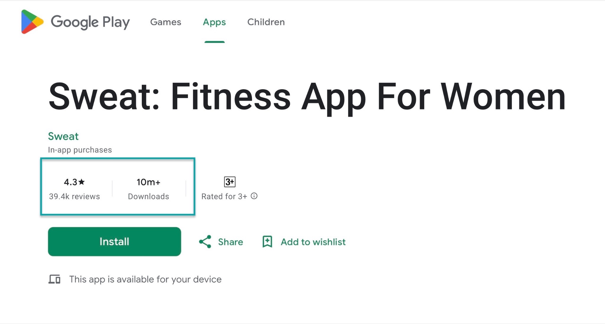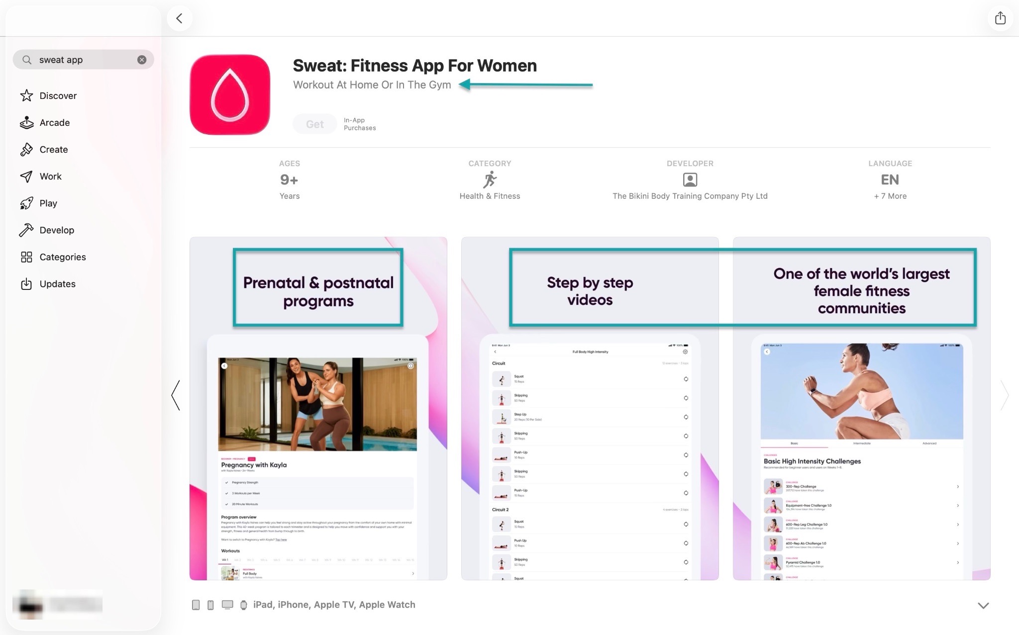 And on the Apple Store, the target audience is very precise. It’s clear that it’s for women who work out at home or at the gym, plus some extra details.