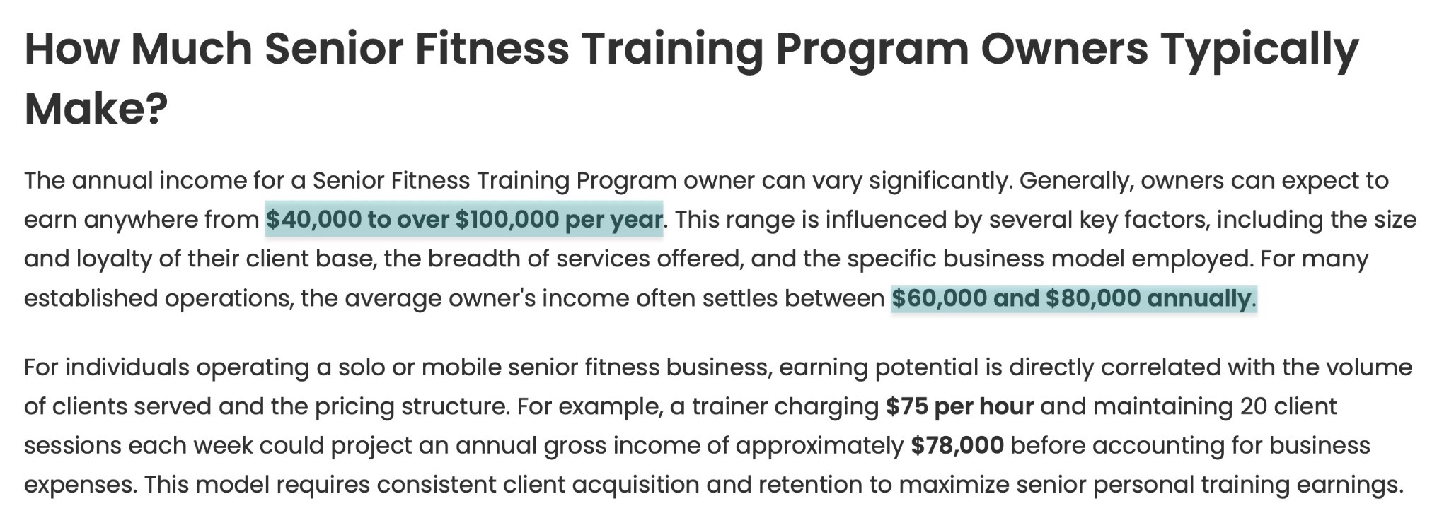 You may not get people to sign up for your program if you charge a rate above the market for similar programs.