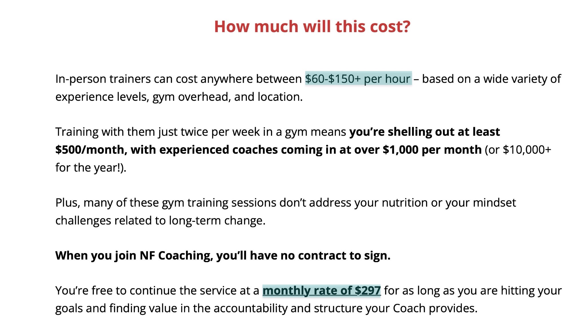 1-on-1 coaching programs like this fitness program on Nerd Fitness Coaching can cost $297 per month.