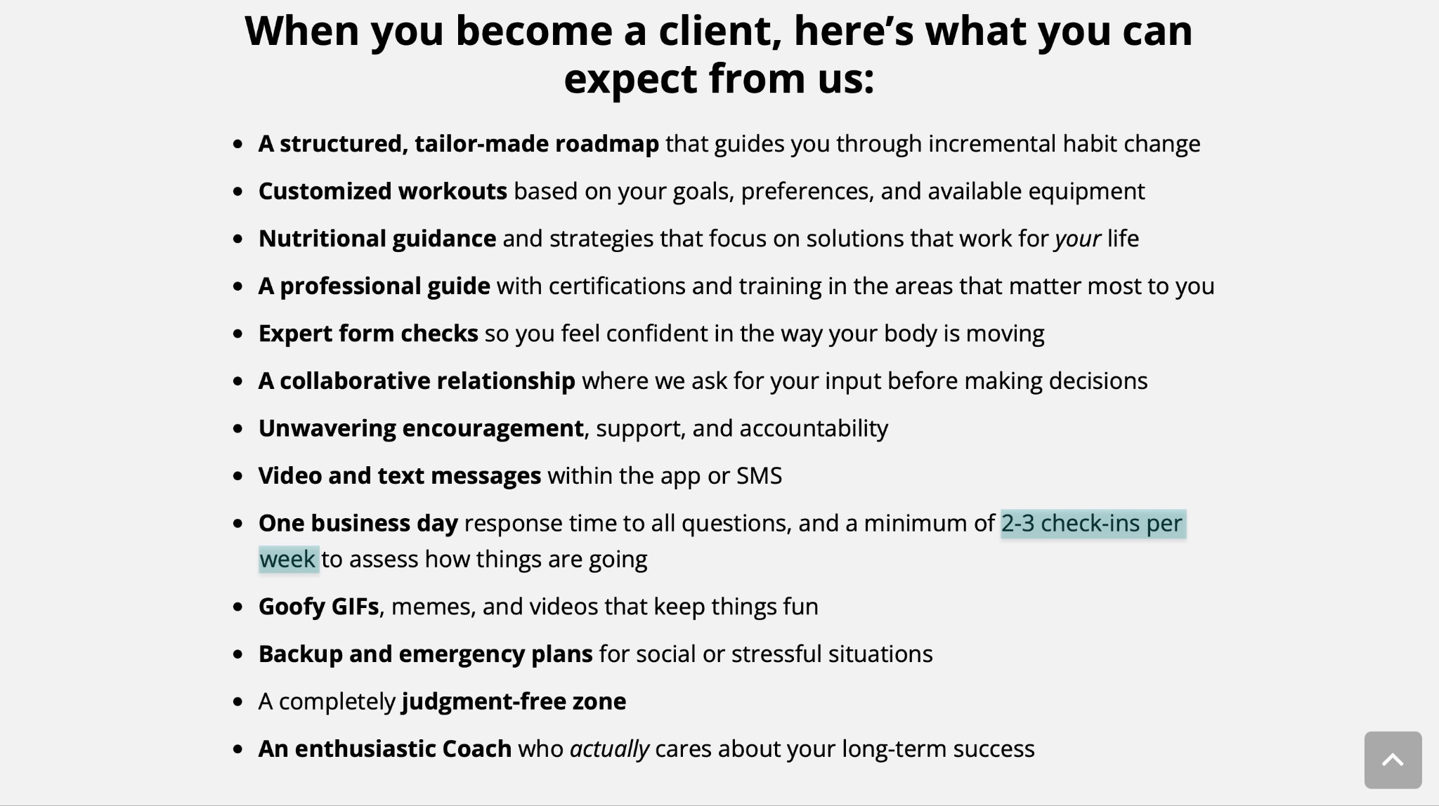 The reason is that fitness coaches provide lots of support. That could be in-person coaching, feedback, community access, 2-3 check-ins per week, and more.