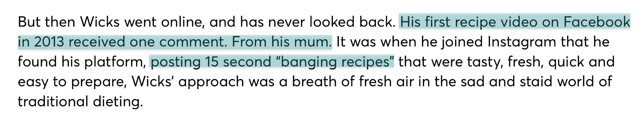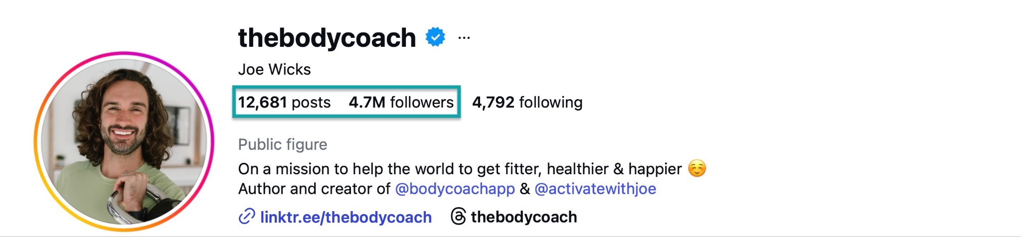 Joe Wicks, for example, is known for his prolific Instagram posting, especially when he started. And that has brought him huge audiences across social media platforms.