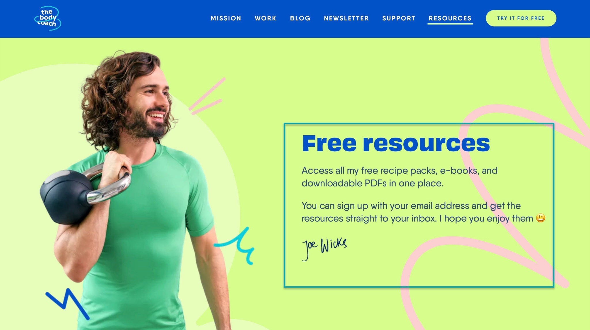 Now, another thing is that Joe Wicks is very generous with resources. On his website, he has a whole window dedicated to downloadable free resources.