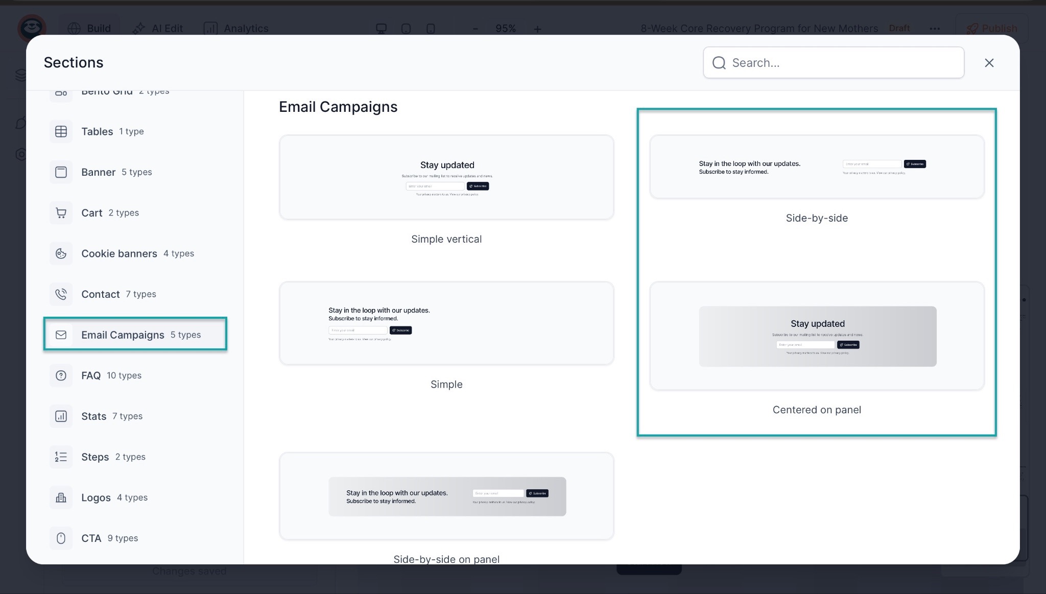 In the pop-up window, click “Email Campaigns.”