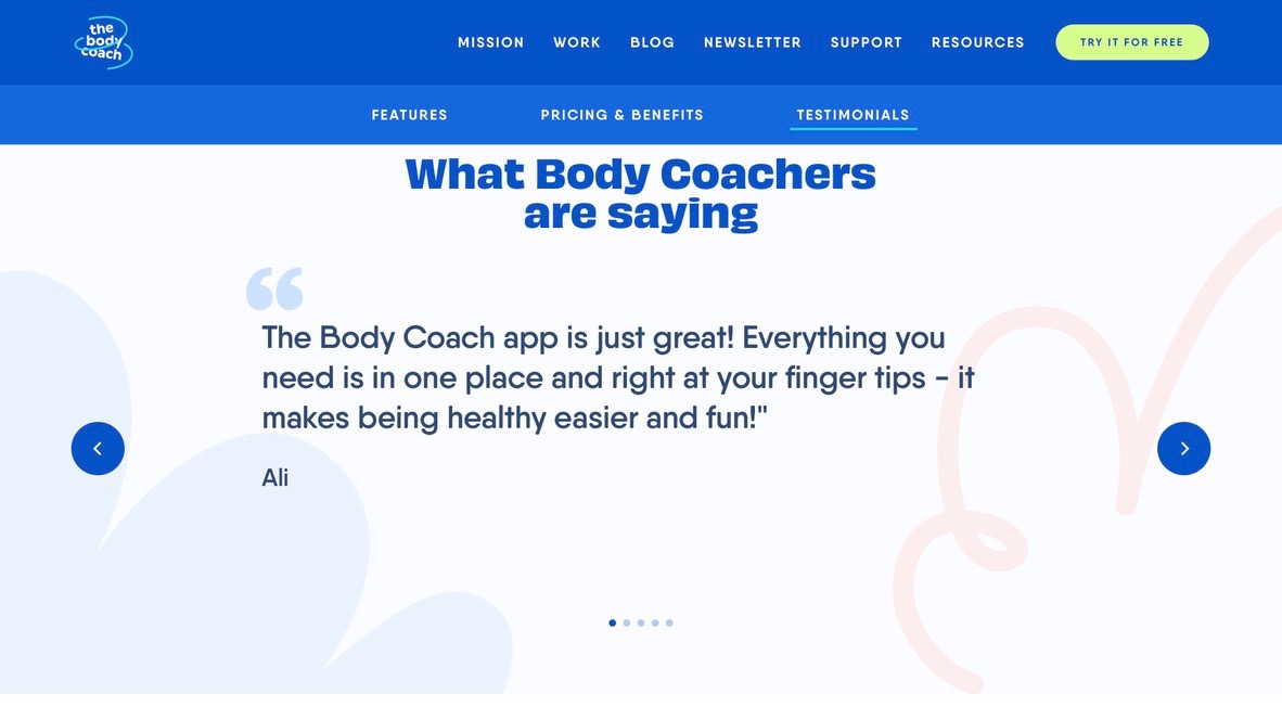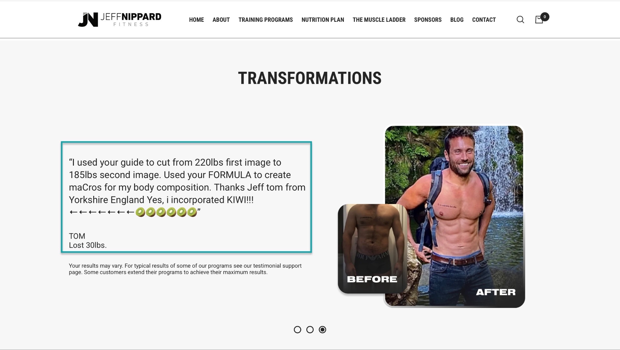 Jeff Nippard does the same thing on his website. That shows how important social proof is to promoting and selling fitness programs online.