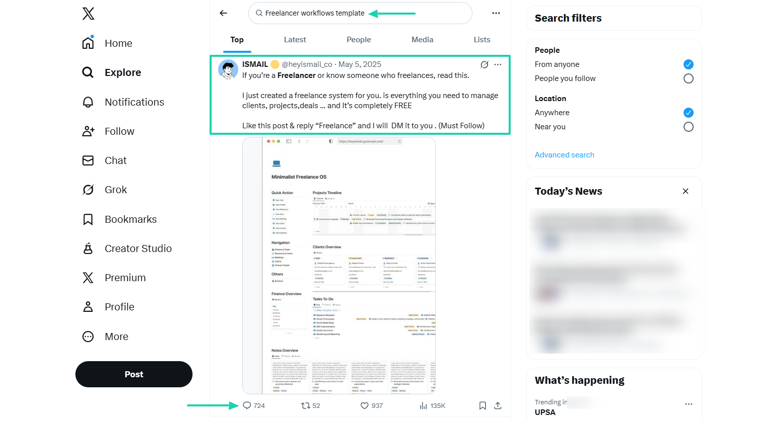 You could, for instance, go on X(formerly Twitter) and search “Freelancer workflows.”