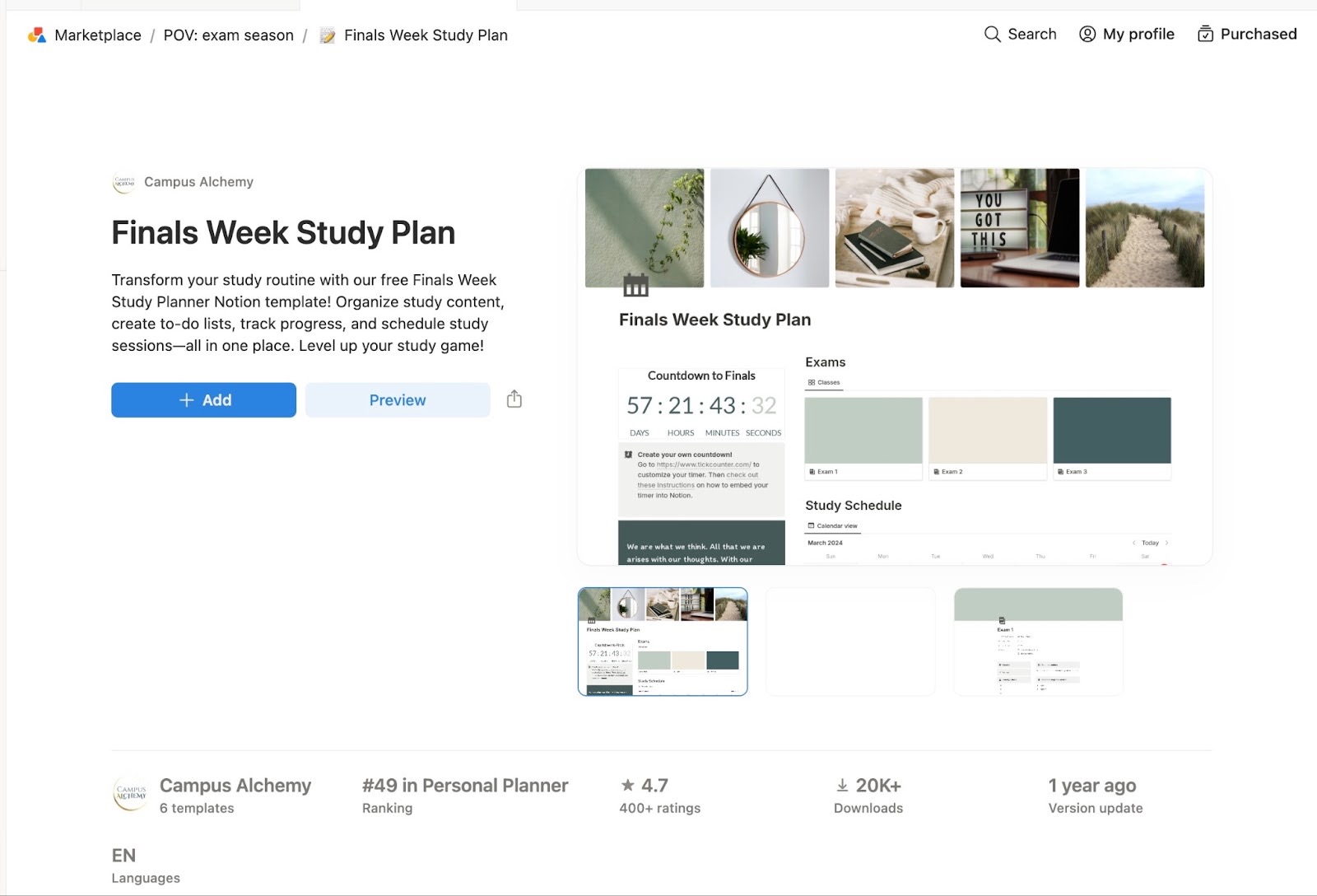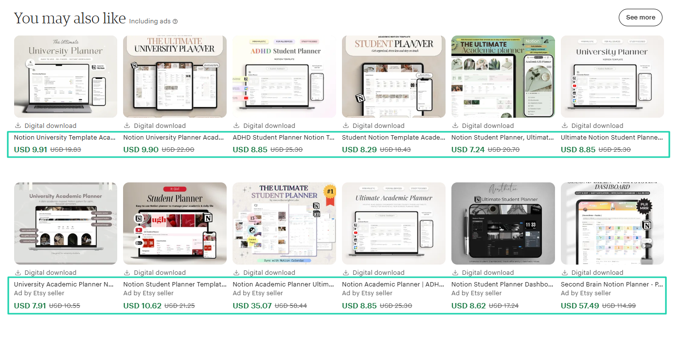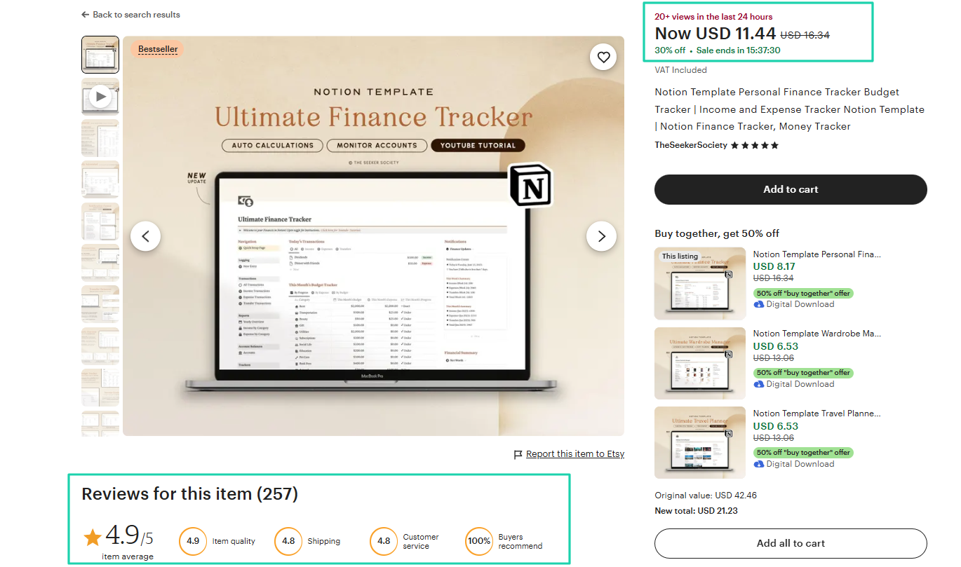 This “All-in-one Student Notion Template” from AyPlannerss is even in demand. At the time I took this screenshot, 14 people had already bought it in the past 24 hours.