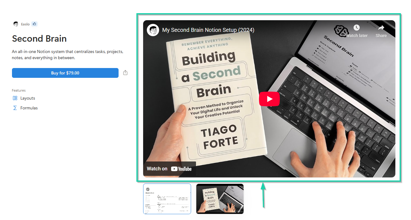Easlo’s Second Brain Notion template has 979 buyers and costs $79. This means this creator made about $77,341 from it.