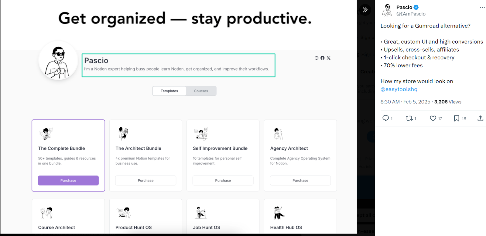 What about Pascio? He’s a Notion template creator who’s built 50+ templates and made over $180,000 in the process.