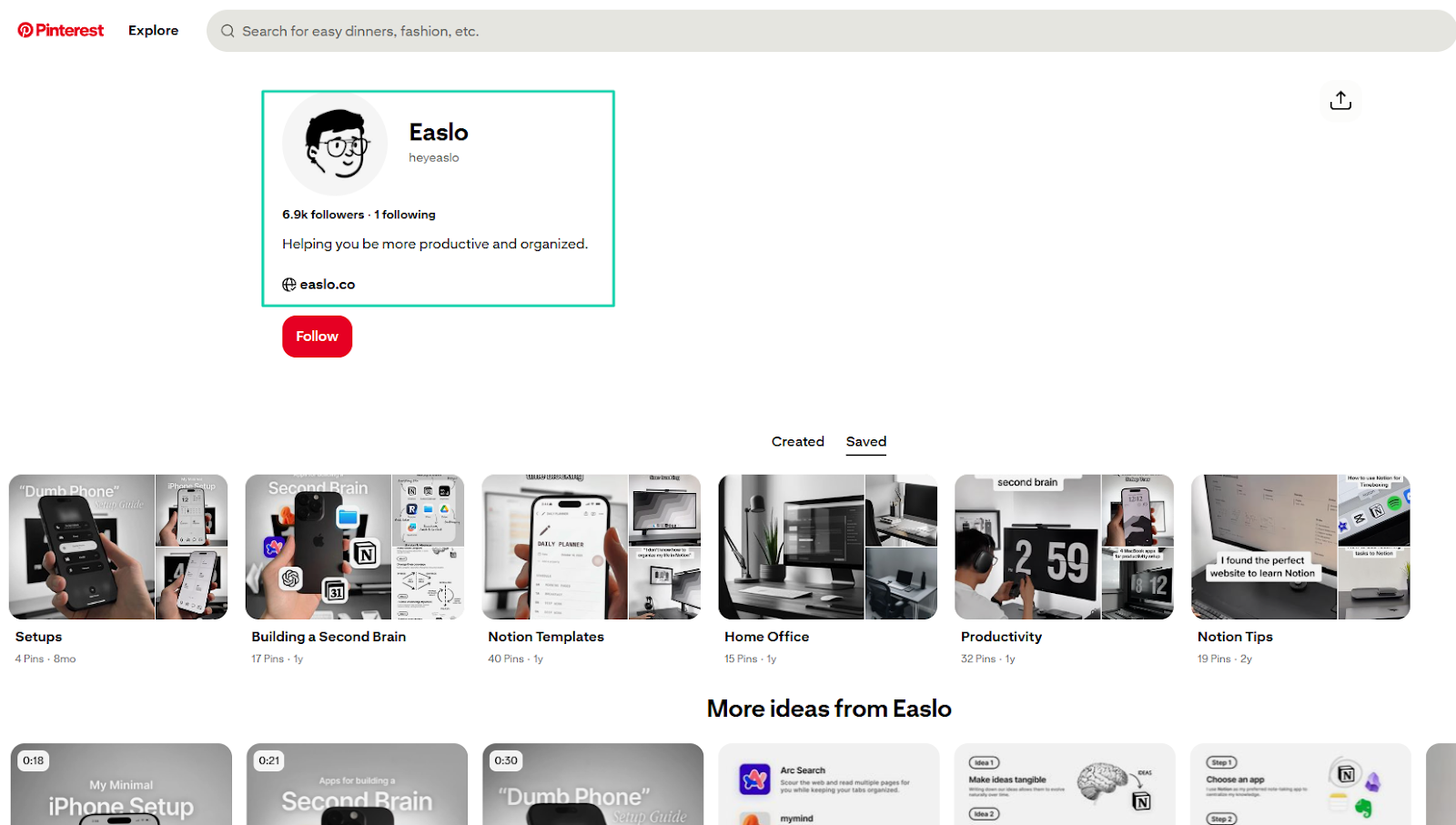 After all, Pinterest is a popular visual discovery platform. Just type “Freelancer workflow Notion template” in the search box.