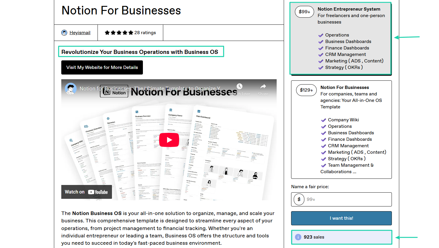 Heyismail built a Business OS template for entrepreneurs and businesses that costs $99+ and $129+. He’s had over 900 sales so far.