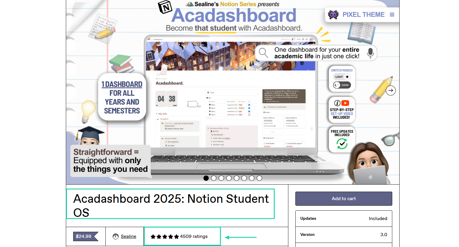 Over 4,500 ratings were left under the Notion student OS built by Sealine. This means more than 4,500 people left comments under this student planner.