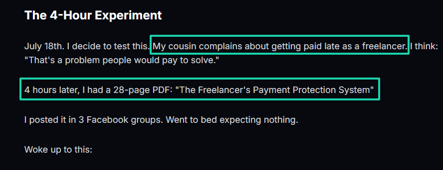 I read about someone who created a PDF in 4 hours. Right after, he heard his cousin complain about being paid late as a freelancer.