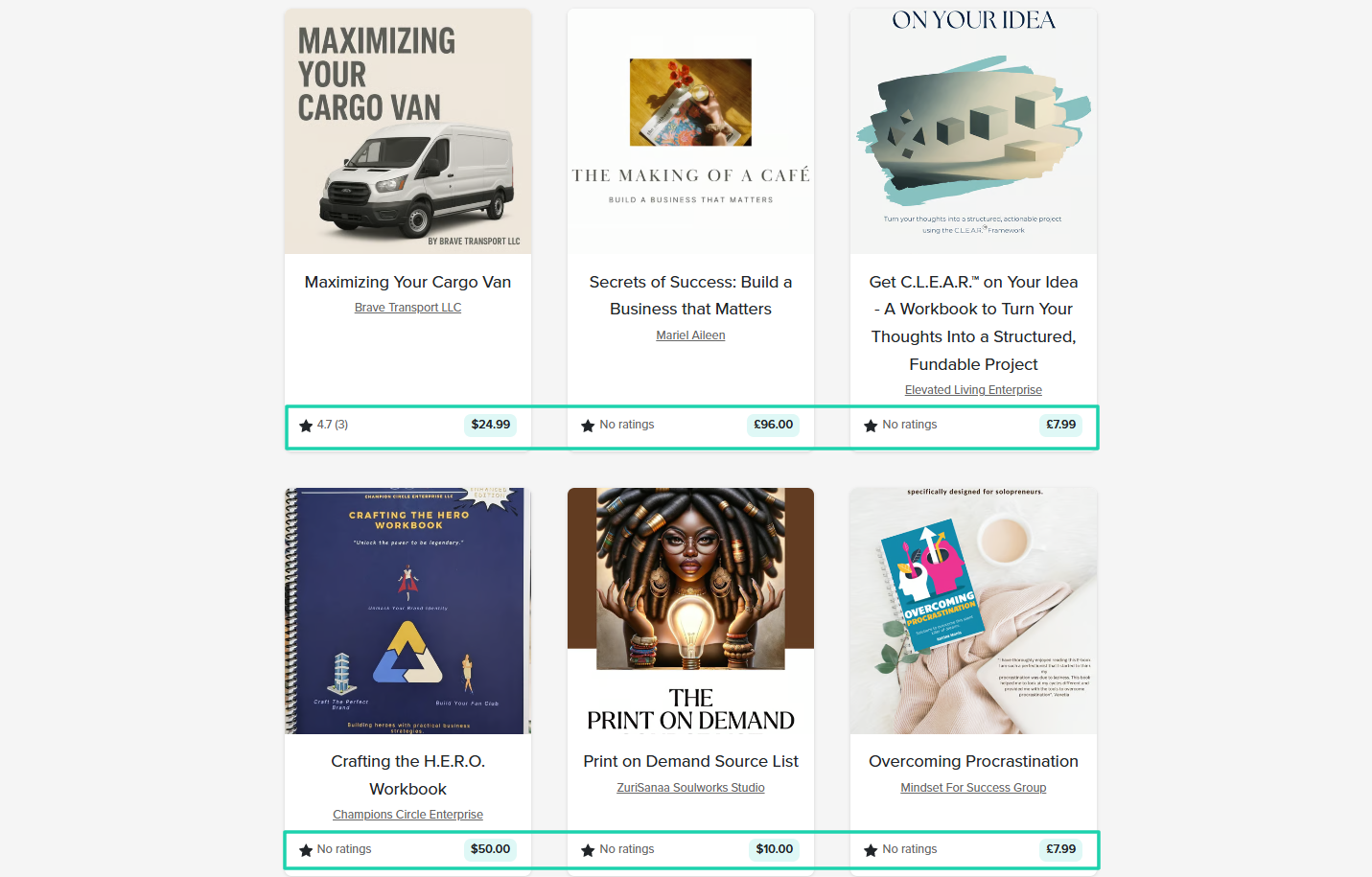 Business and entrepreneurship PDFs on Payhip range from $3 to $100.