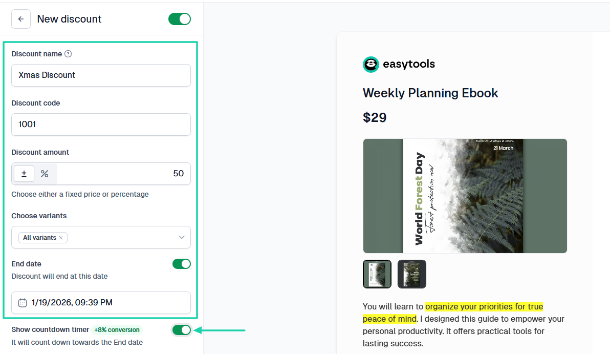Also, on some platforms, you can specify when the discount ends and may even show a countdown timer.