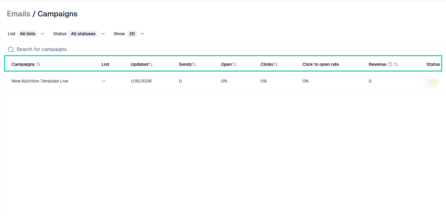 You can see great insights into your campaign, like when it was updated and the number of emails sent and opened. You will also see the clicks and the click-to-open rate.