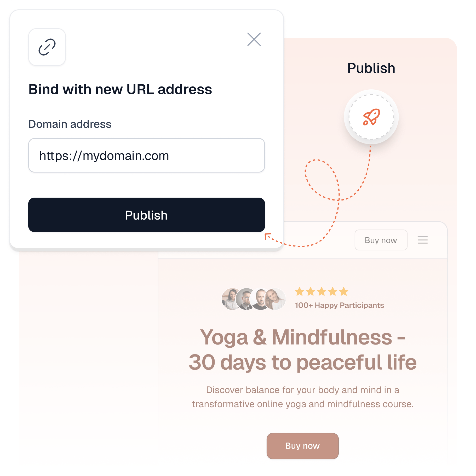 Make your page live in one click - we take care of hosting, domains, and performance.